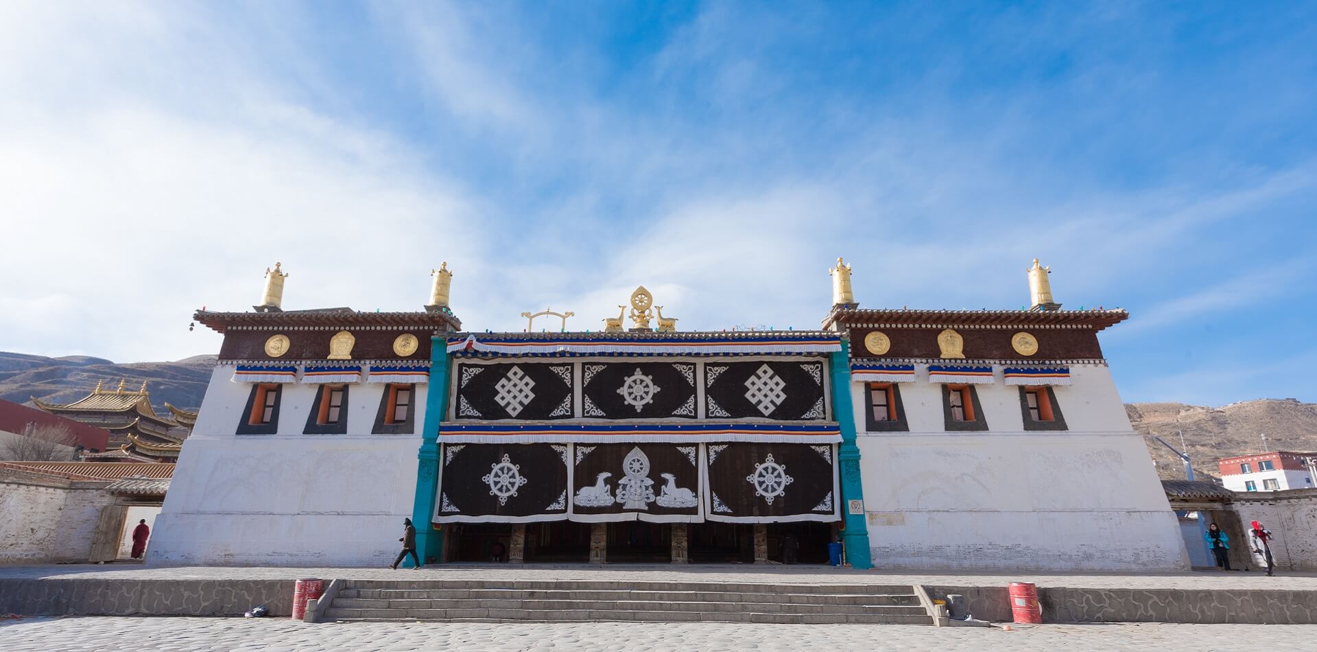 The Assembly Hall of Upper Wutun Monastery is a marvel of Regong arts with its fully carved and painted walls. The lower monastery, on the other hand, is much more lively and hosts religious and local festivals all year round.